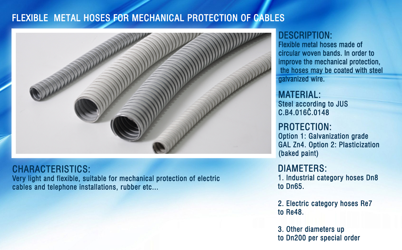 FLEXIBLE METAL HOSES FOR MECHANICAL PROTECTION OF CABLES